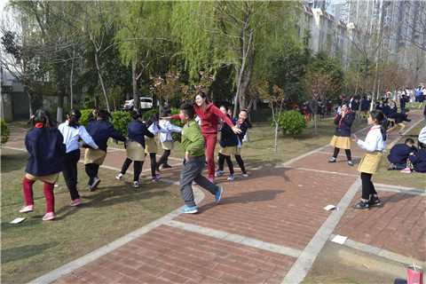 在澧河边,孩子们亲密拥抱着大自然,寻找着春天的足迹,观赏着色彩绚丽的花卉、芬芳醉人的小草,与春天近距离的交流。孩子们有的下棋、有的跳绳、有的玩着各种游戏,同学们兴致勃勃,非常愉快。