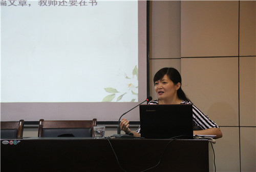 本次培训特别邀请漯河市源汇区教研室副主任翟翠敏进行讲座,翟老师就"部编本"语文教材的编写理念、主要特点、教材概览、具体内容及教学建议等内容,进行了详细介绍。重点介绍"部编本"小学语文一年级阅读教学、拼音教学、口语交际教学的基本内容,并就各个板块提出详细、具体的教学建议甚至是教学的操作步骤,使老师们有路可循,少走弯路。