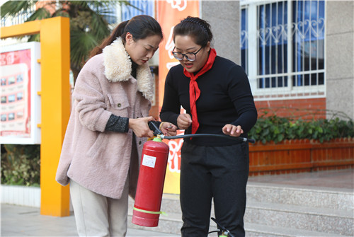 活动邀请到了漯河市源汇区消防大队白果警官,首先给全体学生讲解了最基本的消防安全知识,着重强调了使用灭火器的“一摇、二拔、三喷”的三个使用步骤和自救逃生知识,并现场为大家演示了干粉灭火器的使用方法和使用注意事项,数名老师在白教官的指导下,进行了多次现场灭火实际操作,直到完全掌握实际应用要领。