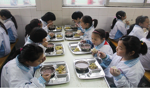 为了确保学生的饮食安全,该校从源头抓起,以保证学生饮食安全和提供营养膳食为目标,不克扣学生一分钱伙食费,坚持自主经营学生食堂,实行自助就餐形式,不刷卡,不卖票,想吃多少就吃多少,“让学生吃好,吃饱,不够就要”。